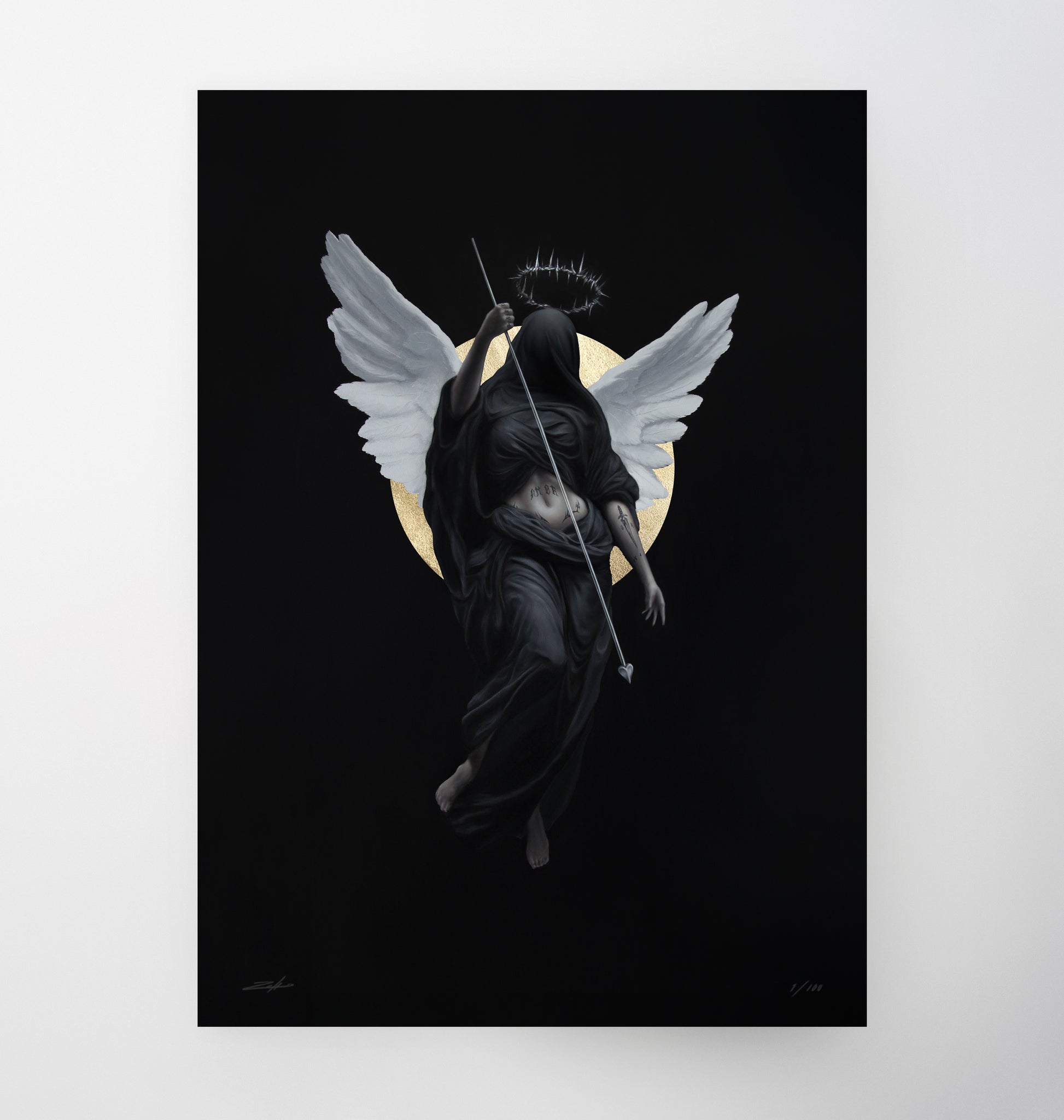 Hand painted by Vandale with genuine 23 carat gold on museum quality matte 210 gr Hahnemühle fine art paper.